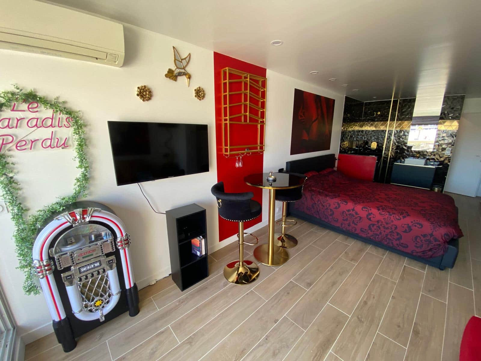 Pensé pour des couples complices, joueurs et épicuriens, cet appartement conjugue confort absolu, équipements premium et ambiance soigneusement travaillée. Chaque instant y devient une expérience, chaque séjour une invitation à ralentir, à se retrouver… ou à prolonger la nuit.